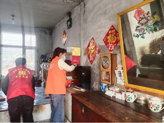 2.興隆村,高齡困境老人石秀玲家,老人已經(jīng)85歲了,還患有腿疼、心臟病、眩暈癥、高血壓,需要常年吃藥維持生命。老人有兩個(gè)兒子,老大楊樹發(fā),患有精神障礙一直沒(méi)有結(jié)婚,一直由這位可憐的母親來(lái)照顧,有時(shí)犯病還會(huì)毆打母親。還有另外二兒子年輕喪偶,常年待在外地打工。從沒(méi)有回來(lái)看望過(guò)老母親。家里面一片陰霾,我們的到來(lái)猶如一絲光,給他們帶來(lái)了慰問(wèn)物資,還幫助老人收拾屋子打掃衛(wèi)生。老人許久沒(méi)有出現(xiàn)的笑容也映在了臉上。
